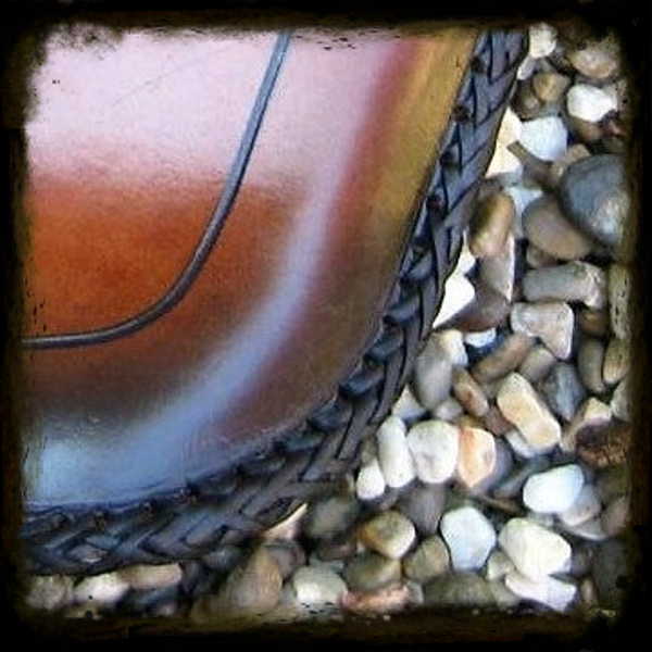 Dieser Sitz ist handgenäht und wird aus dickem Leder hergestellt.